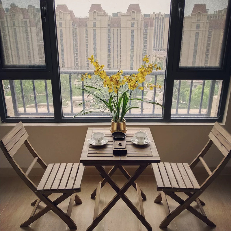 简约实木可折叠做旧户外奶茶咖啡店花园餐桌网红阳台桌椅小木桌热门设计联盟服务商