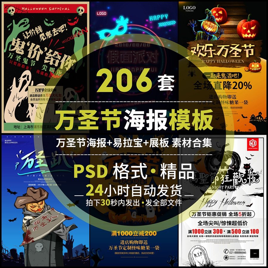 中国万圣节海报易拉宝模板ps展架展板朋友圈店铺活动促销psd设计热门设计联盟服务商