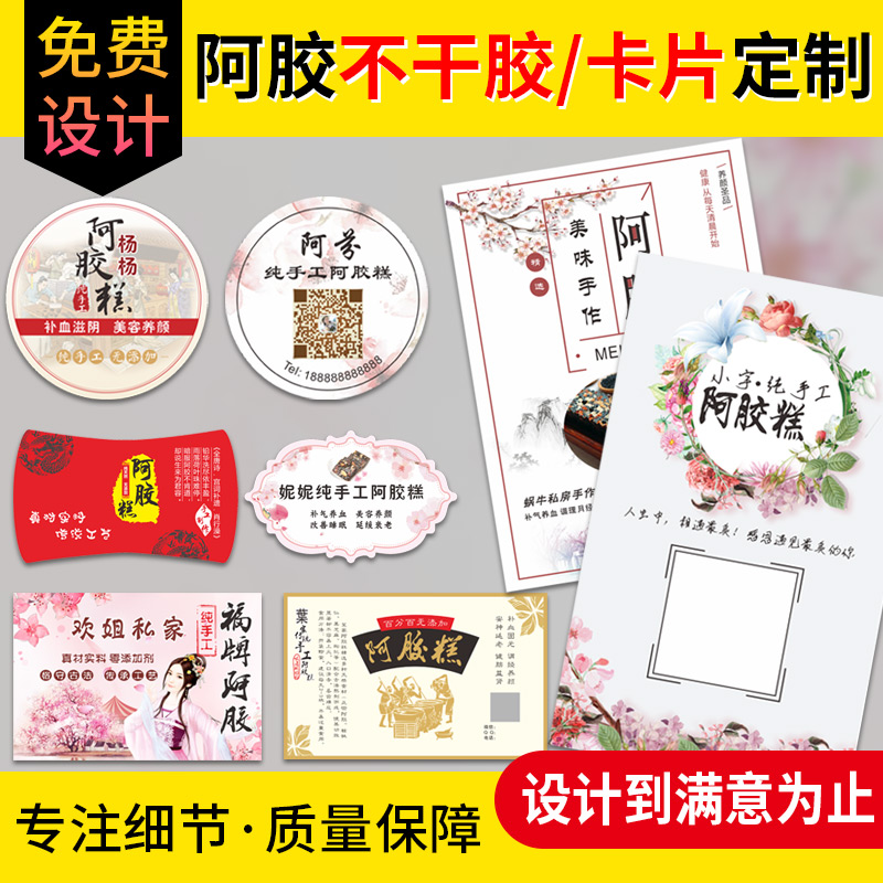 阿胶糕贴纸纯手工定制牛皮纸西洋参阿胶糕不干胶礼品礼盒瓶标贴印刷设计功效说明装二维码logo广告标签热门设计联盟服务商