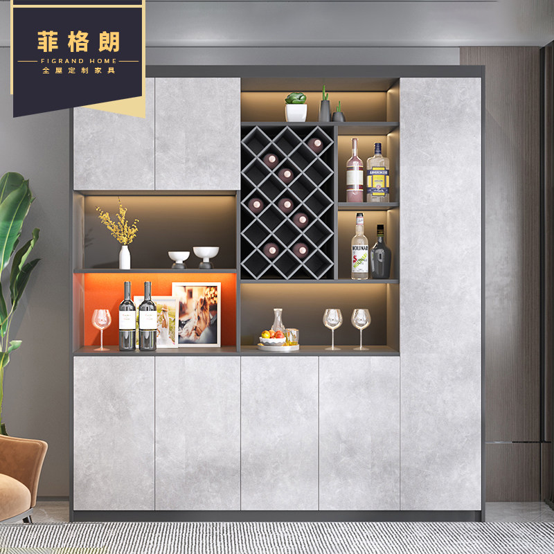 摩登意式轻奢餐边柜酒柜一体靠墙可定制小型家用酒柜客厅展示柜热门设计联盟服务商