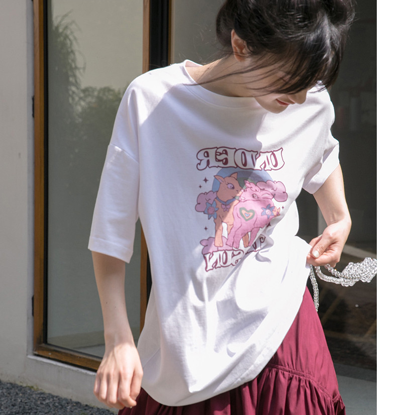 t恤设计感小众夏季新款纯棉宽松薄款绵羊字母印花粉色短袖上衣女热门设计联盟服务商