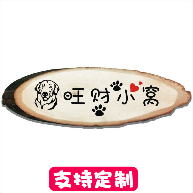 原木狗窝挂牌实木狗舍门牌可爱犬舍装饰乡村狗笼狗狗照片定制。热门设计联盟服务商