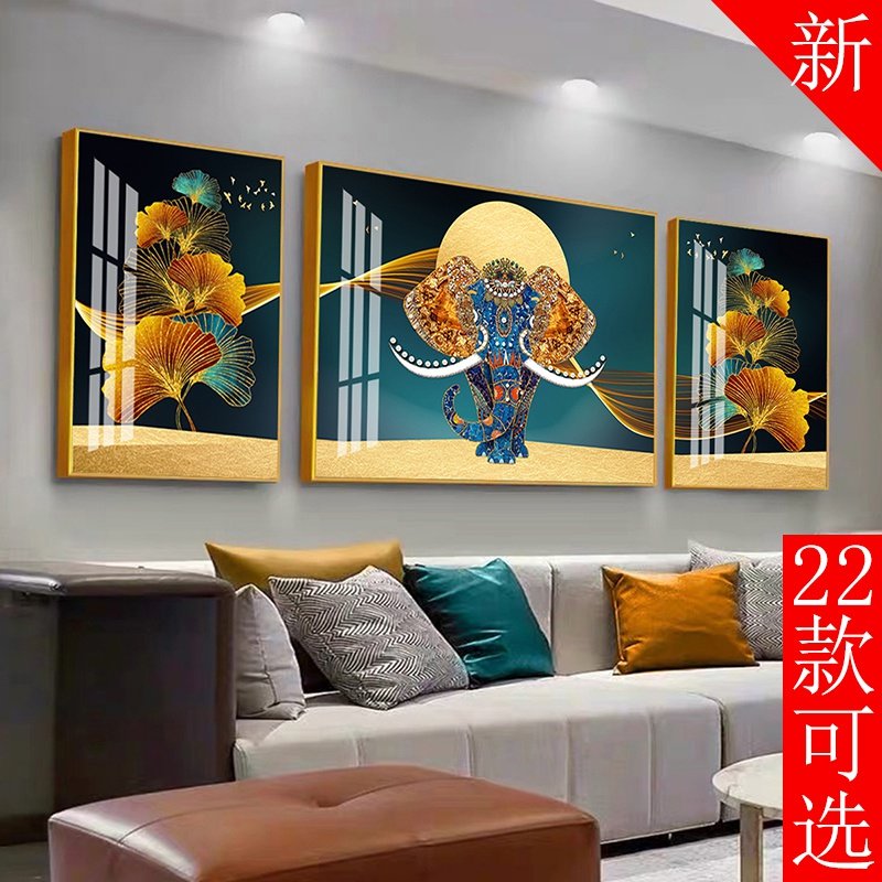 大象麋鹿简美三联客厅沙发装饰画简约招财水晶壁画挂画轻奢风北。热门设计联盟服务商