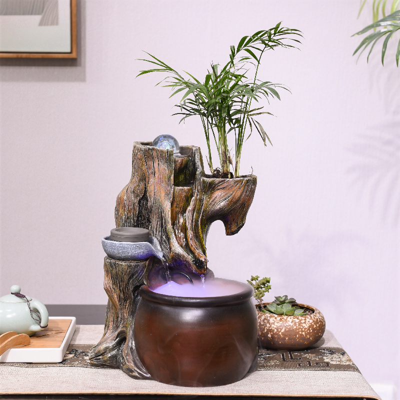 新中式禅意景观流水喷泉摆件客厅花园阳台落地木雕装饰循环水造景热门设计联盟服务商