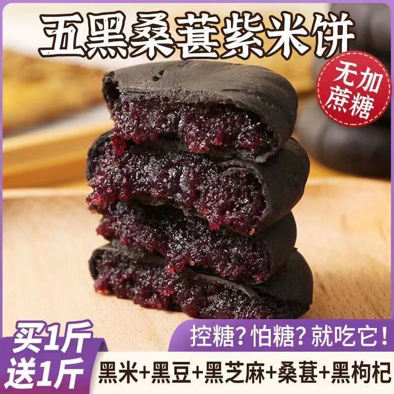 无蔗糖五黑桑葚紫米饼健康早餐代餐饱腹传统糕点甜点网红零食产品热门设计联盟服务商