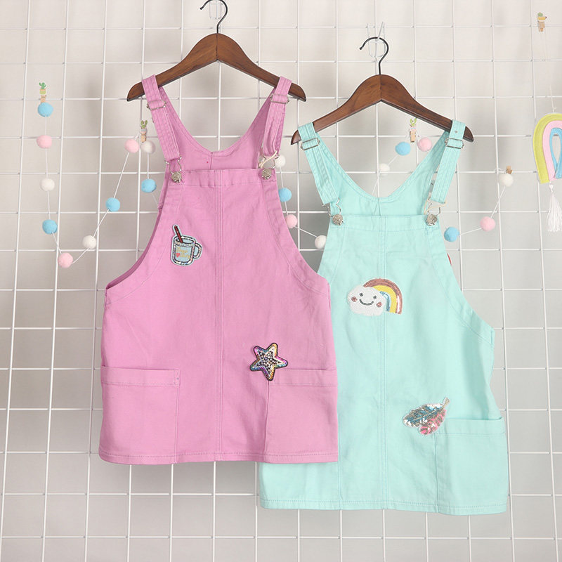 夏季薄款童装 女童宽松纯棉卡通亮片彩虹背带短裙 欧美单热门设计联盟服务商